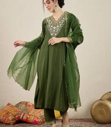 Mehndi women kurta pant dupatta set stitched