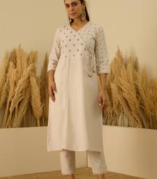 Off white women kurta pant set stitched