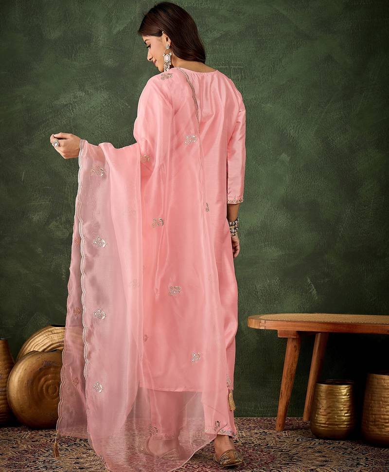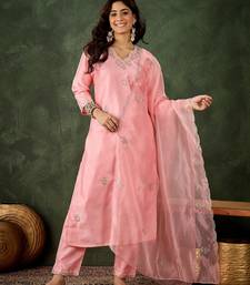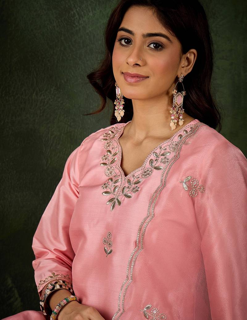 Pink women kurta pant dupatta set stitched