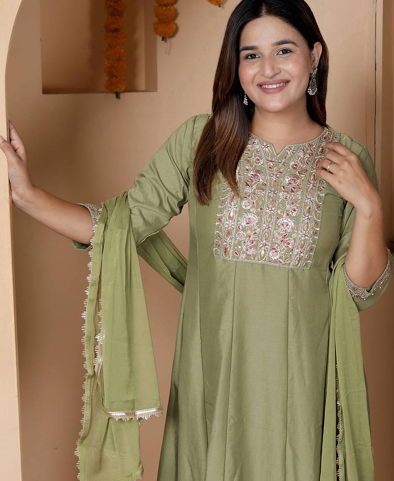 Pista women kurta pant dupatta set stitched