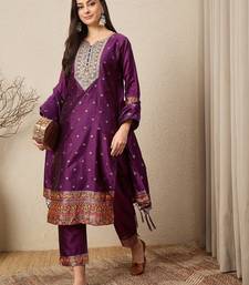Purple women kurta pant dupatta set stitched