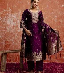 Purple women kurta pant dupatta set stitched