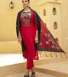 Red women kurta pant dupatta set stitched