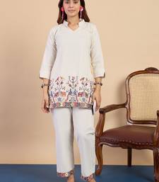 White women khadi cotton kurta pant set stitched