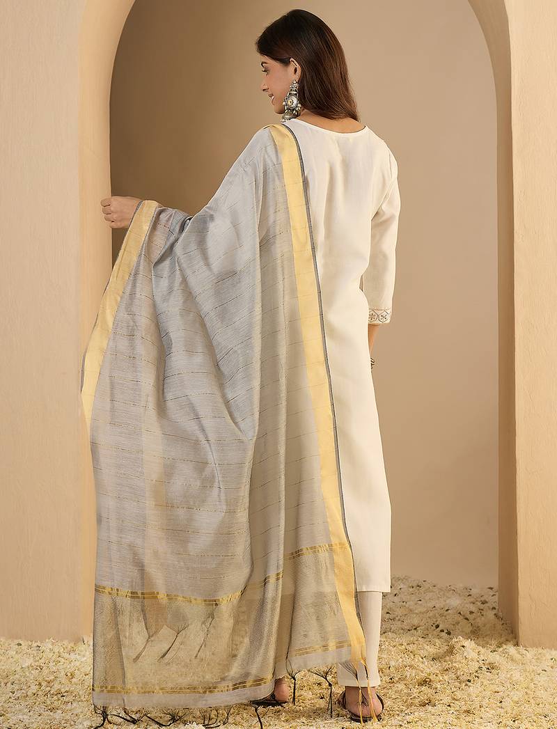 | Product Name | White Women Kurta Pant Dupatta Set | |