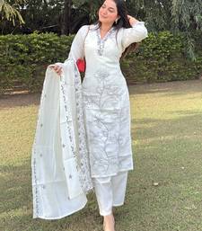 White women kurta pant dupatta set stitched