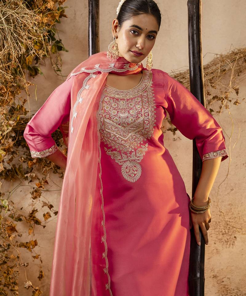 | Product Name | Peach Silk Blend Embroidered Kurta Pant Set | |