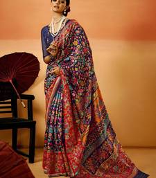 Blue pashmina cotton silk saree with diaphanous saree with blouse for women