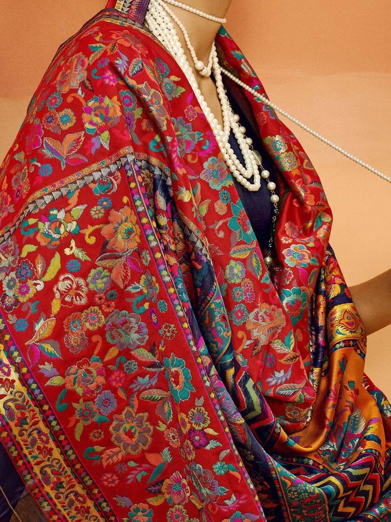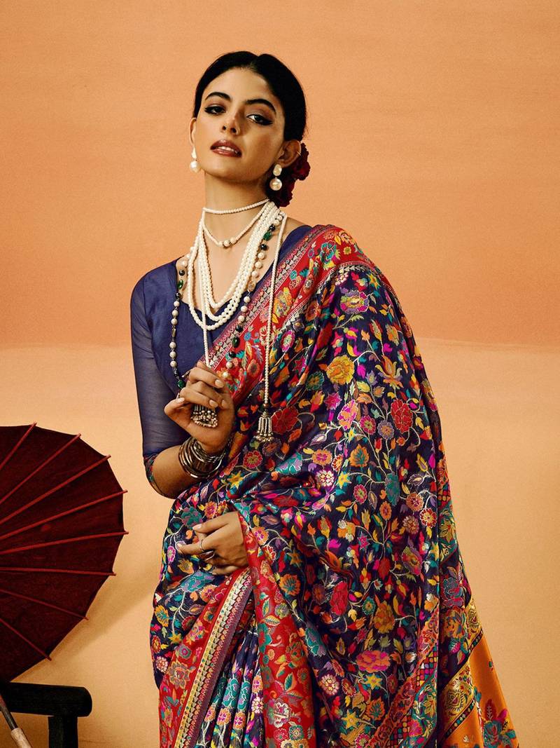 | Product Name | Blue Pashmina Cotton Silk Saree With Diaphanous Saree With Blouse For Women | |