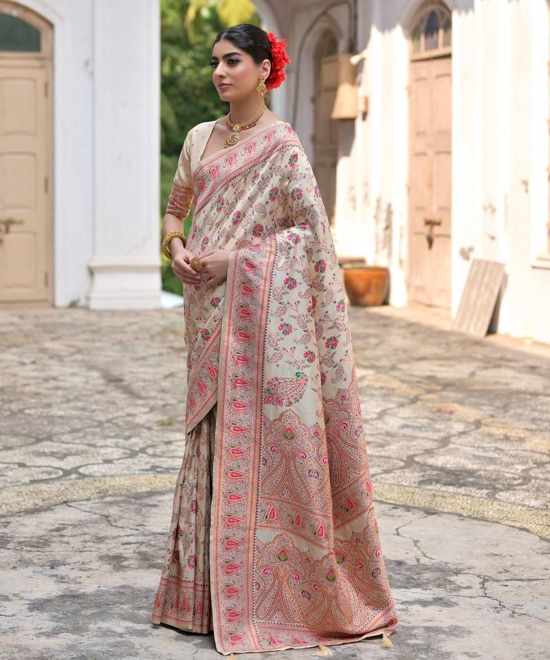 | Product Name | Cream Solid Pashimina Silk Saree With Blouse | |