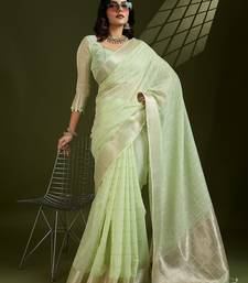 Green solid tissue saree with blouse