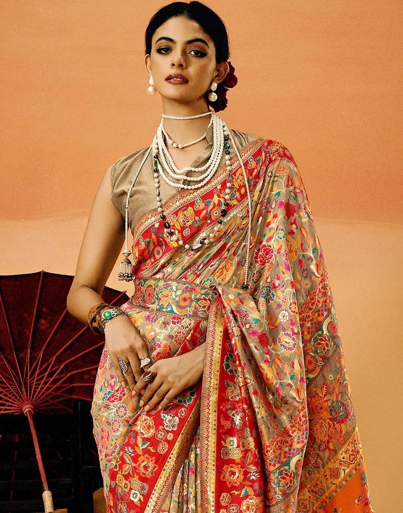 | Product Name | Grey Pashmina Cotton Silk Saree With Diaphanous Saree With Blouse For Women | |