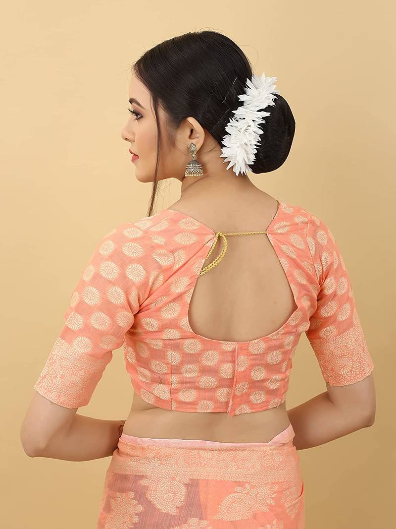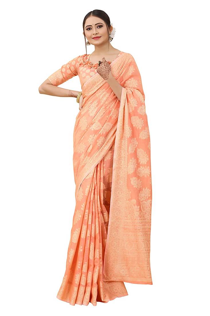 | • | Saree | : | Color- Peach / Fabric- Cotton |
