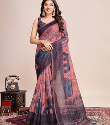 Light pink linen printed saree with blouse