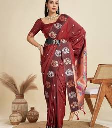 | • | Saree | : | Color- Maroon / Fabric- Silk Blend |