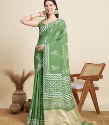 Parrot green cotton printed saree with blouse