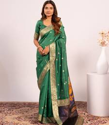| • | Saree | : | Color- Parrot Green / Fabric- Silk Blend |
