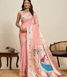 | Product Name | Peach Silk Blend Printed Saree With Blouse | |