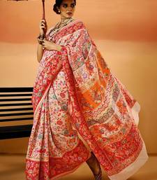 Pink pashmina cotton silk saree with diaphanous saree with blouse for women