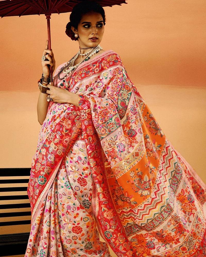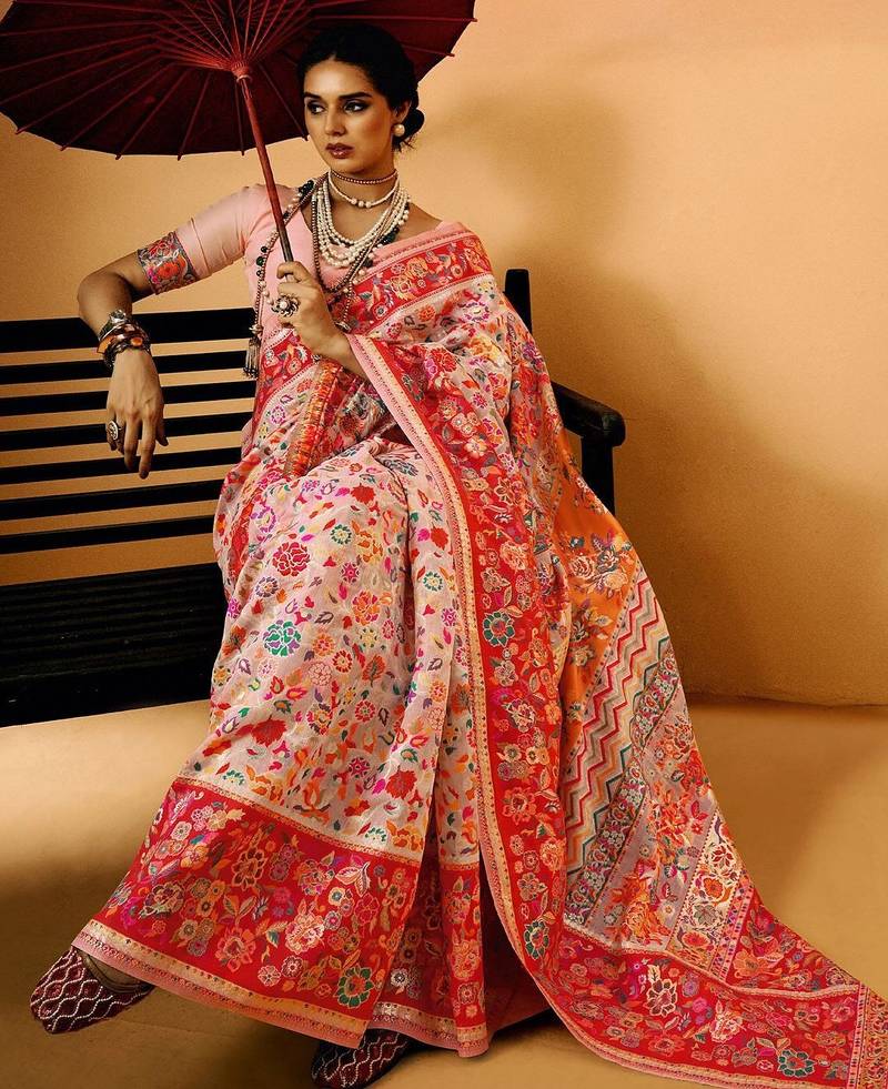 | Product Name | Pink Pashmina Cotton Silk Saree With Diaphanous Saree With Blouse For Women | |