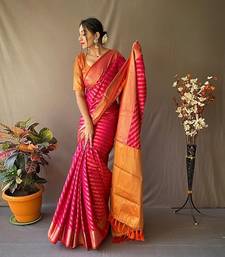 Pink plain silk blend silk-blend-sarees saree with blouse
