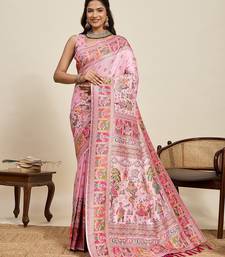 Pink silk blend blend printed saree with blouse