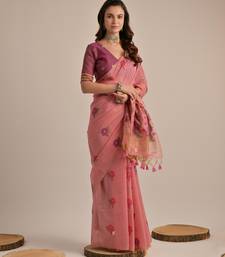 | Product Name | Pink Solid Blended Cotton Saree With Blouse | |