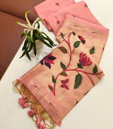 Saree : Color- Pink / Fabric- Blended Cotton
