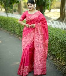 | Product Name | Pink Solid Raw Silk Blend Saree With Blouse | |