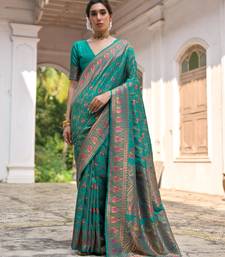 Rama green solid pashimina silk saree with blouse