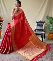 Red plain silkBlend patola-saris saree with blouse