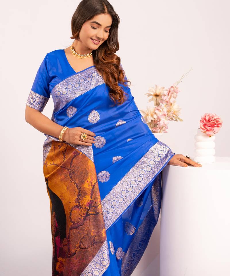 | Product Name | Royal Blue Solid Silk Blend Saree With Blouse | |