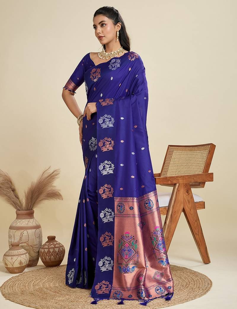 | Product Name | Royal Blue Solid Silk Blend Saree With Blouse | |