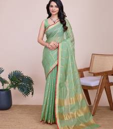 Sea green chanderi printed saree with blouse