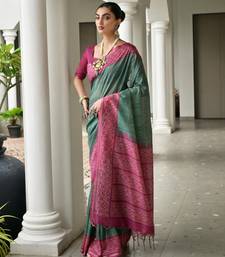 | Product Description | Soft Desi Tussar Silk Saree With Unique Ikkat Painted Pattern With Tradional Ikkat Pallu And Border With Traditional Tassels And Contrast Blouse Piece |