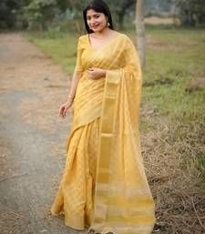 Yellow solid silk blend saree with blouse