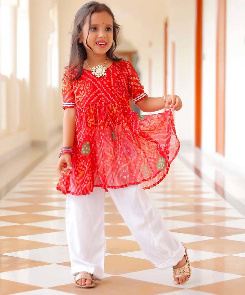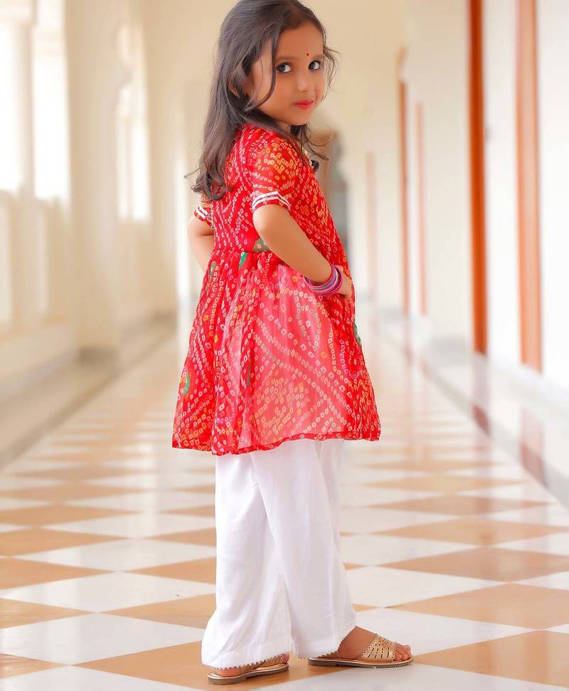 Product Name Kid's Red Bandhani Kurta Set With Cotton Pants