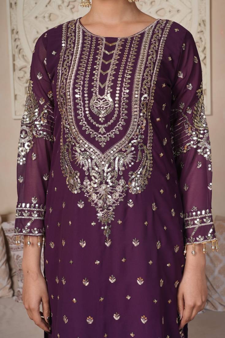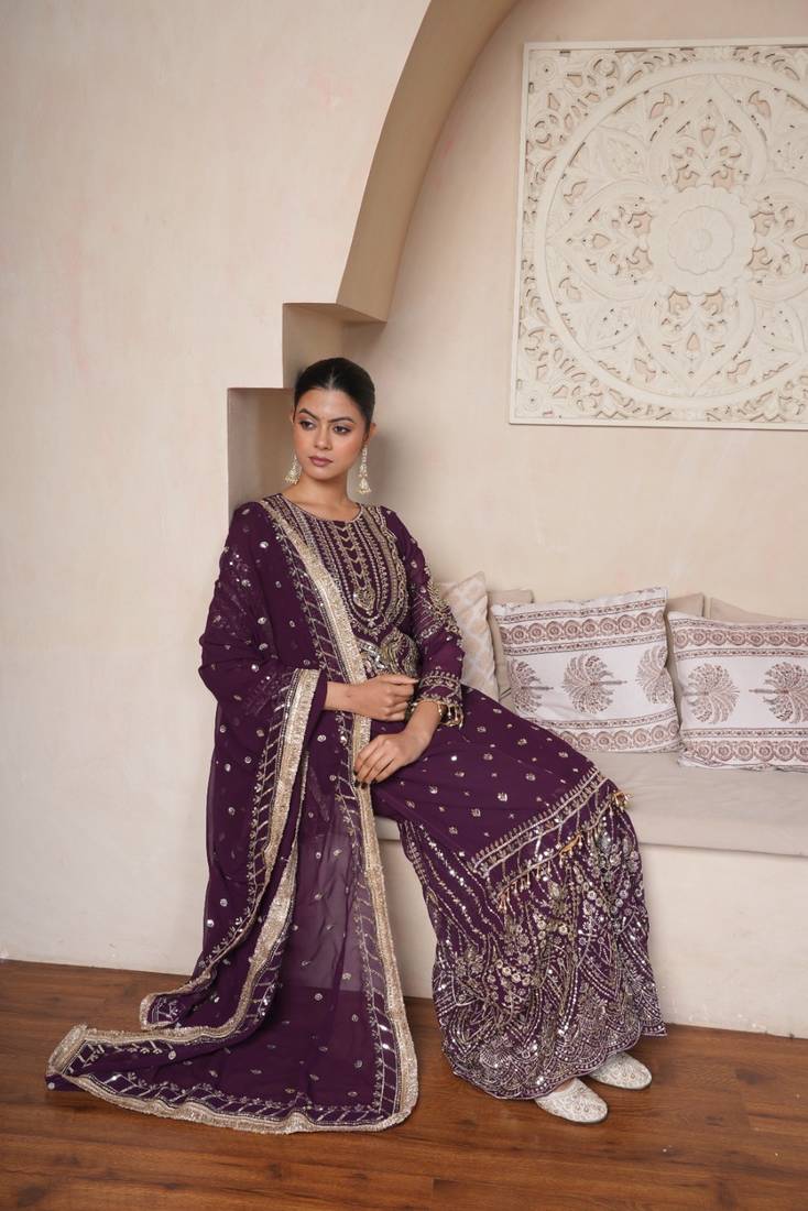 Regal wine heavily embroidered set stitched