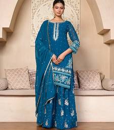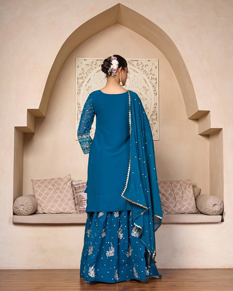 Teal elegance embroidered sharara set stitched