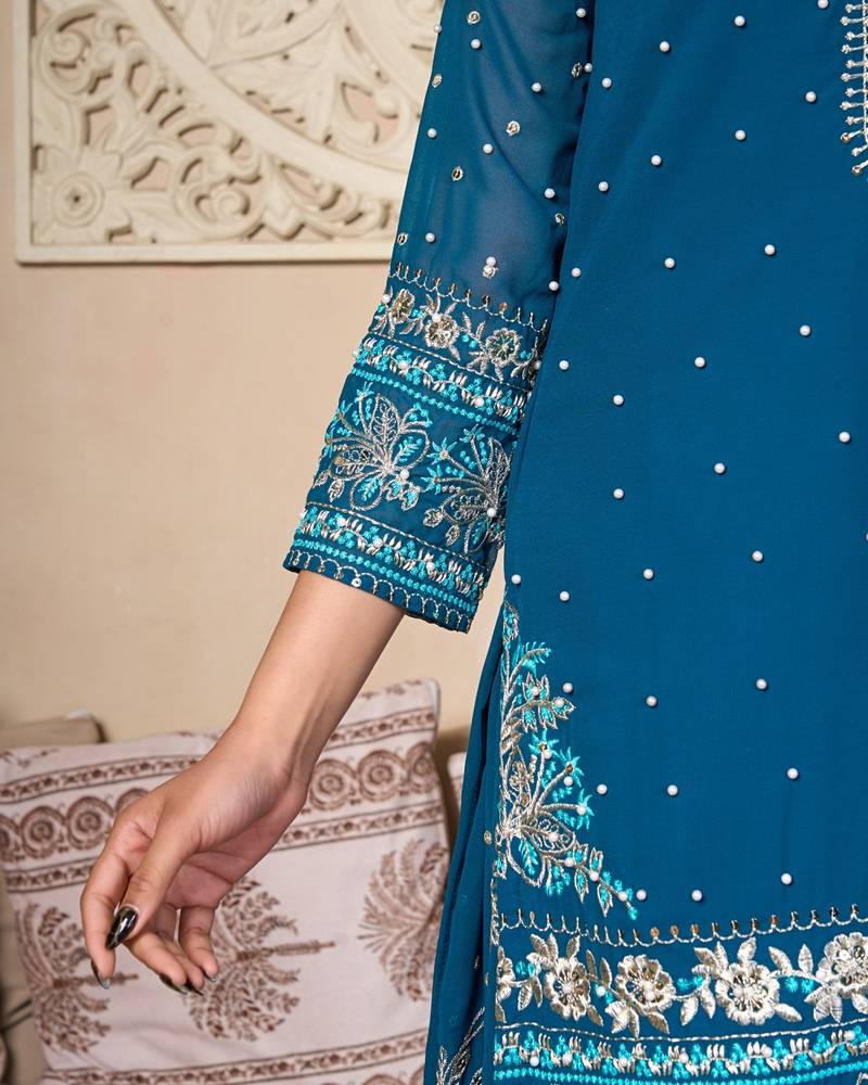 | • | Kameez | : | Color- Teal / Fabric- Georgette |