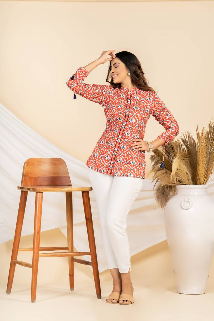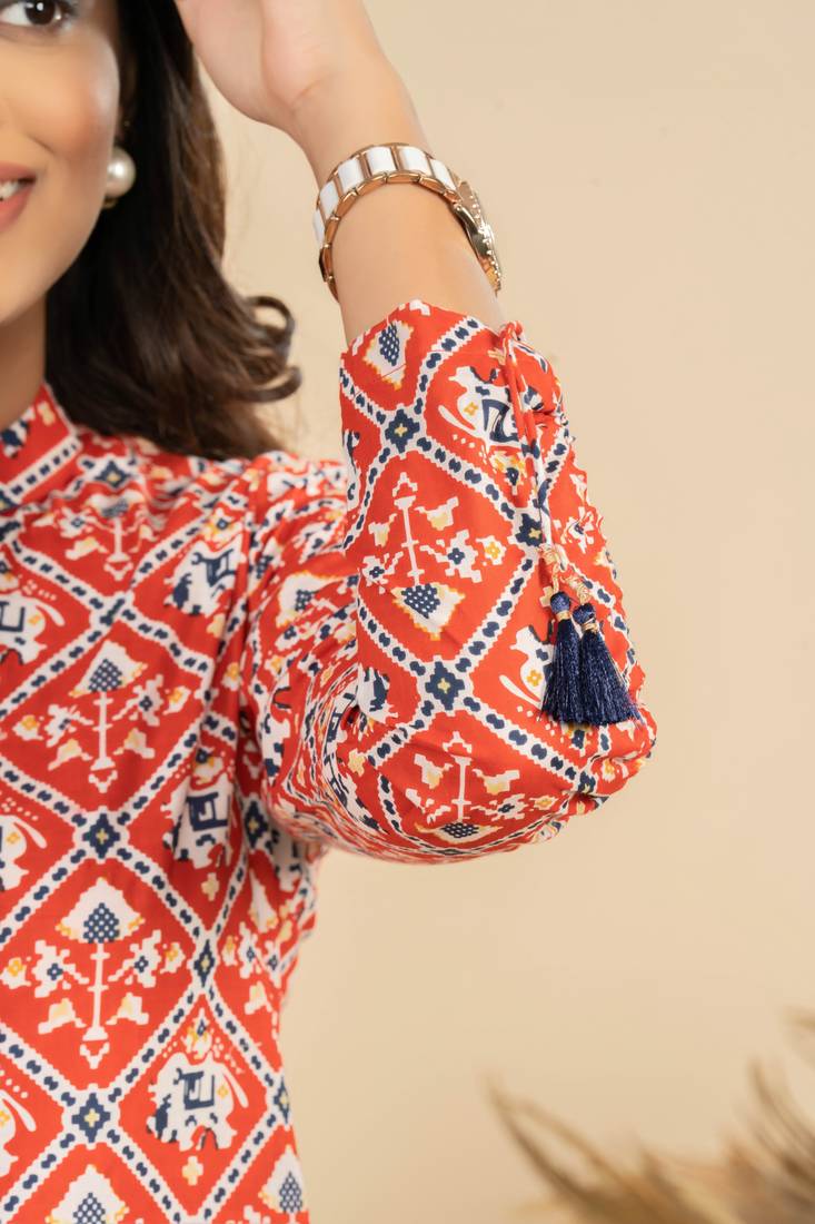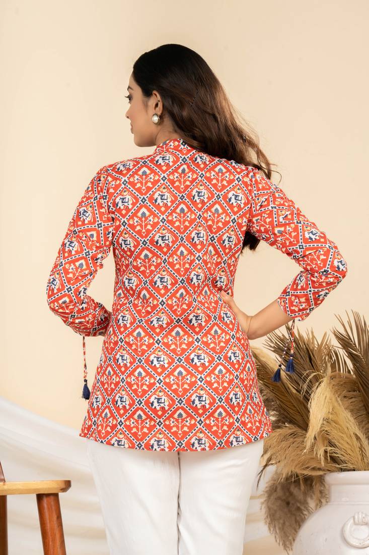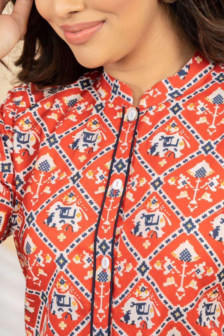 Product Name | Weavllite Women's Red Pure Cambric Cotton Patola Print Tunic | |