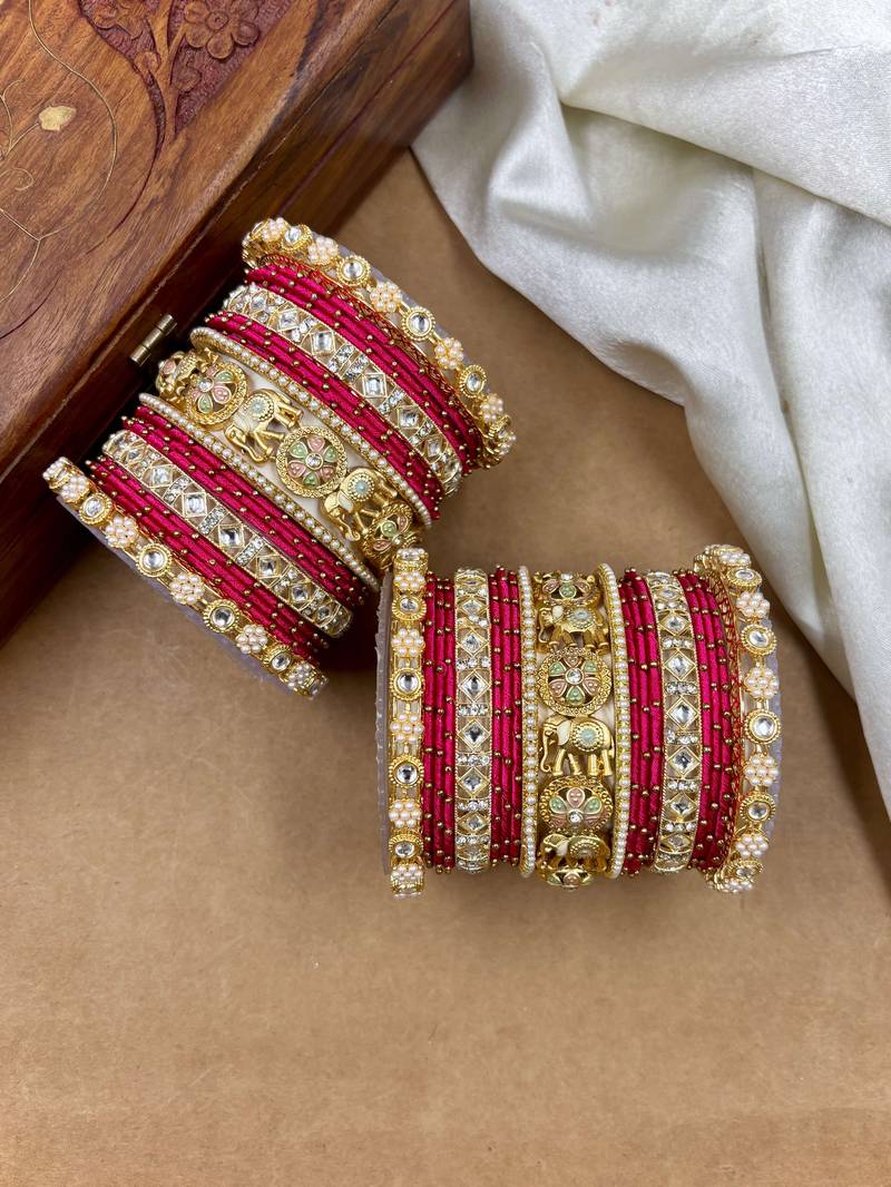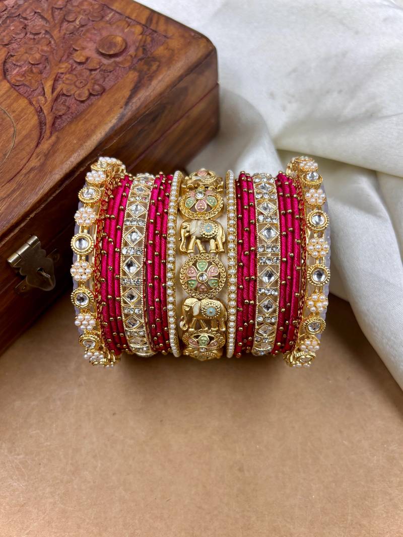 Designer rani silk thread bangles set