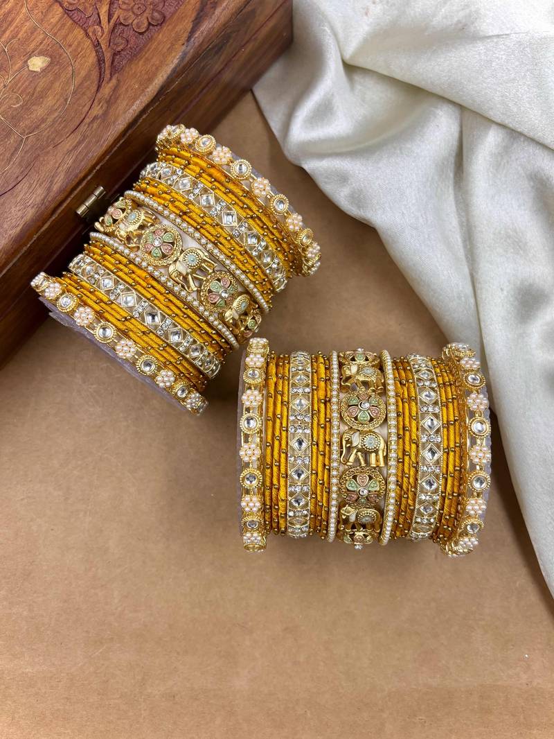| Product Name | Designer Yellow Silk Thread Bangles Set | |