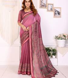 Baby pink printed art silk designer pallu saree