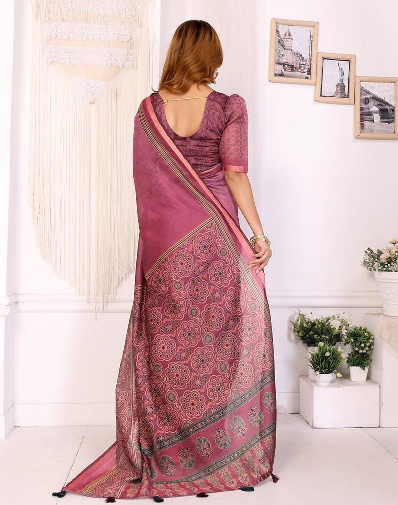 Product Name Baby Pink Printed Art Silk Designer Pallu Saree