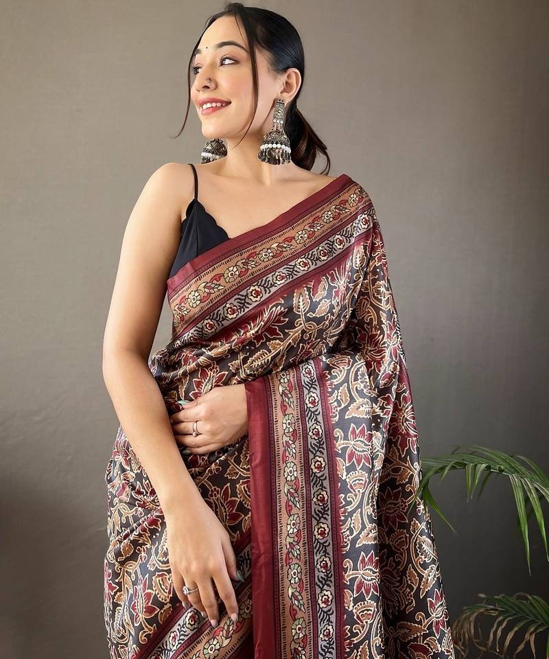 Black art silk woven saree