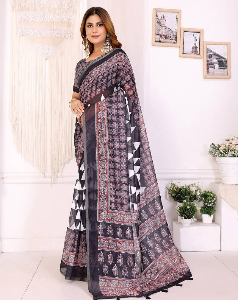 | Product Name | Black Printed Art Silk Designer Pallu Saree | |