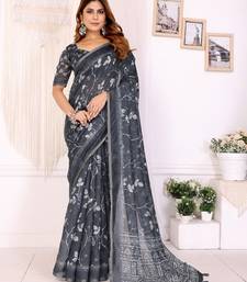 Black printed art silk designer pallu saree