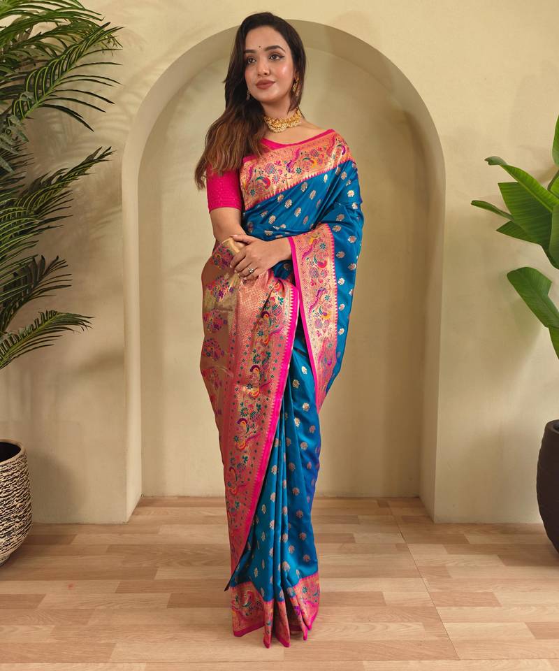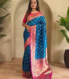 Blue art silk woven saree