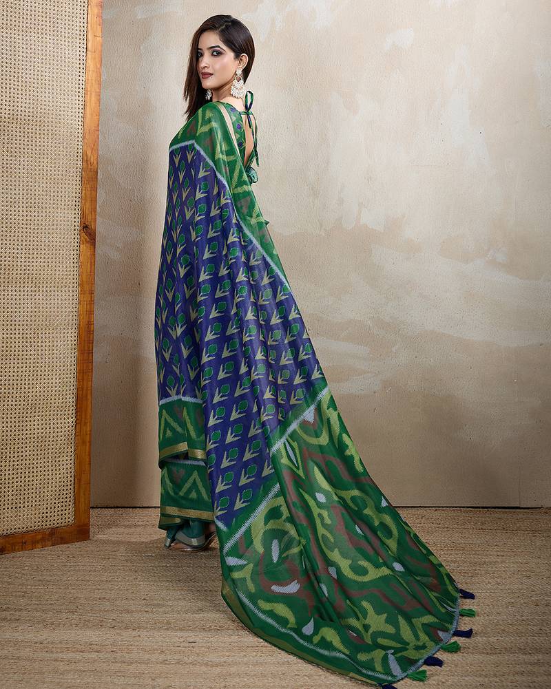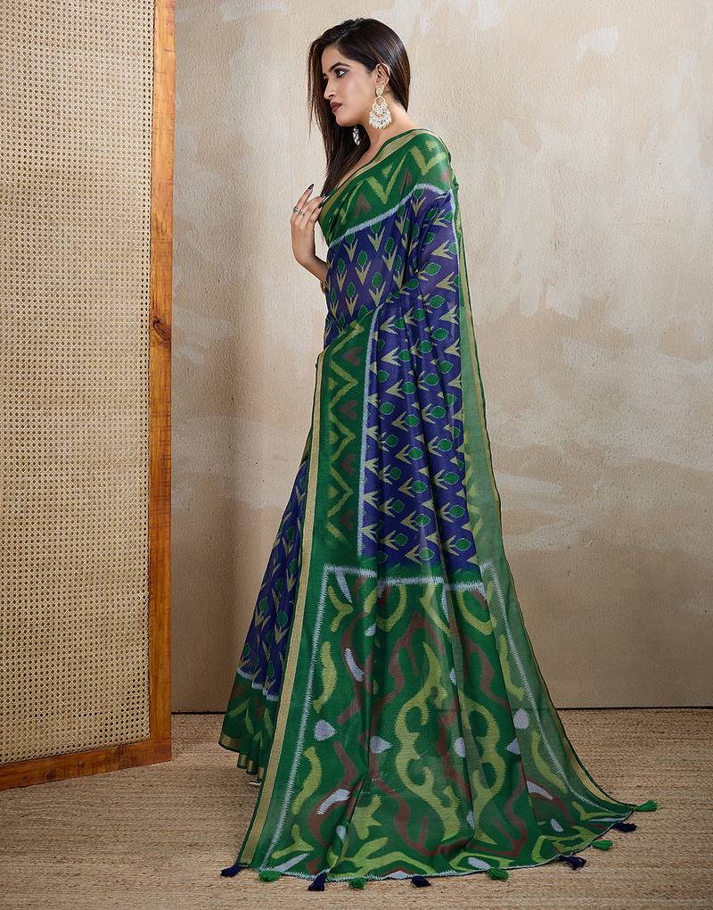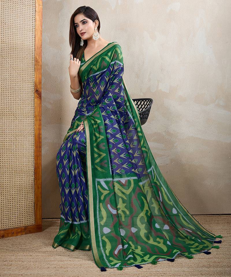 | Product Name | Blue Printed Art Silk Designer Pallu Chanderi Saree | |